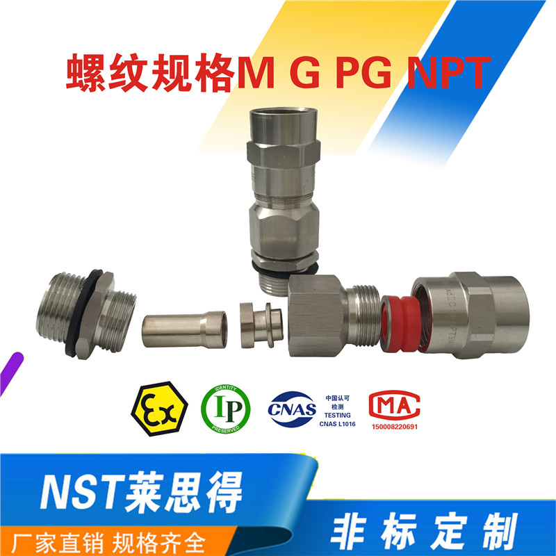 NST莱思得牌的不锈钢金属防爆接头 双密封铠装格兰头 不锈钢防水格兰头M20产品:估价:11,规格:M20,产品系列编号:齐全 发布日期:2018-3-26